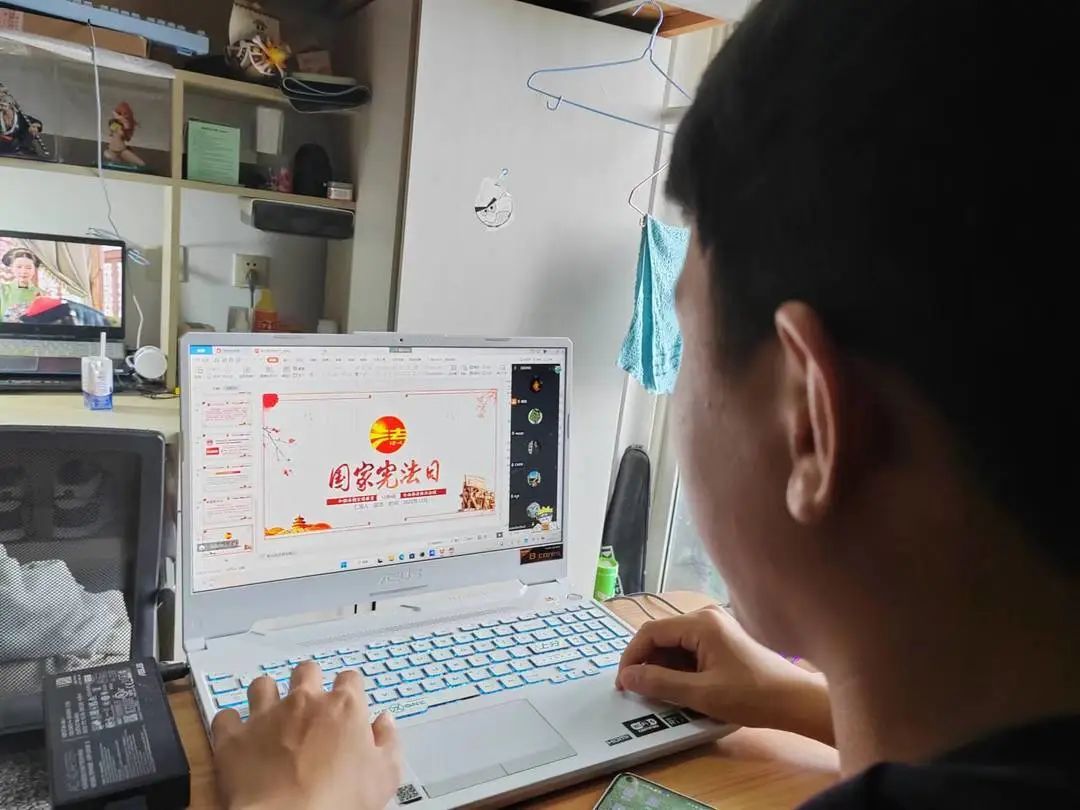12月1日至3日,各年级在宿舍、教室开展“学宪法、讲宪法”主题班会与“领悟党的二十大报告——法治建设学习素养公开课”活动,各班班长、团支书向同学们讲述了宪法的目的、意义及修订内容等,以个人领学、分组讨论、法治节目展播、微感言征集等多种形式开展宪法学习,推动习近平法治思想入耳入脑入心。