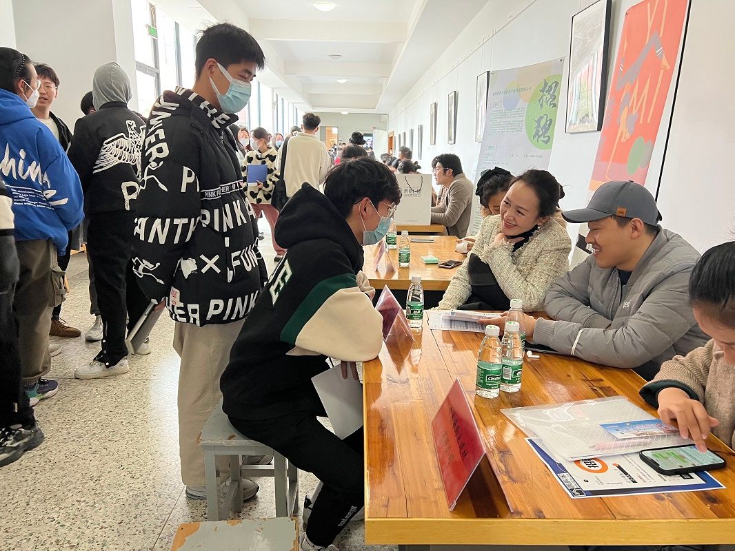 招聘会现场,徐新华与各企业招聘人员和毕业生们进行亲切交谈。学院党政领导、专业系主任、毕业班辅导员深入招聘会一线,不时鼓励毕业生调整预期、勇于自我推荐。毕业生们在招聘席前仔细阅读用人单位岗位需求,与企业招聘代表面对面交流岗位的发展前景、薪资待遇等内容,并向意向企业投递简历。现场热烈的气氛还吸引了许多非毕业班同学前来观摩。大三年级学生代表、B环艺202陈奇同学表示,通过此次招聘会,感受到了就业形势的压力,了解到了应聘时应提升的综合素养,自己要更加细致地制定未来一年的职业发展规划。