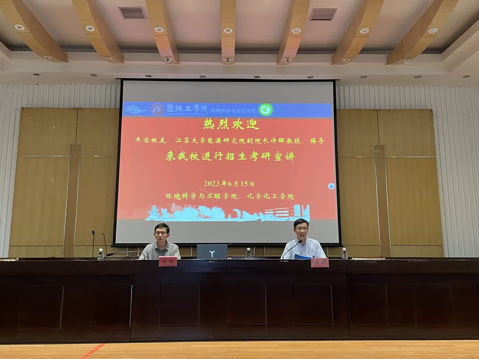 6月16日下午,江苏大学能源研究院党总支副书记、副院长何晓萍,副院长许晖一行5人来真人赌博游戏_澳门赌博网-app*官网为环境学院、化工学院作研究生招生宣传,宣讲会在北校区图书馆报告厅举行。会议由环境学院党总支副书记周政主持,化工学院应用化学系主任张蓓蓓,环境学院学工办主任沈丹,辅导员徐浩、王翔、相关专业考研学生等200余人参加。