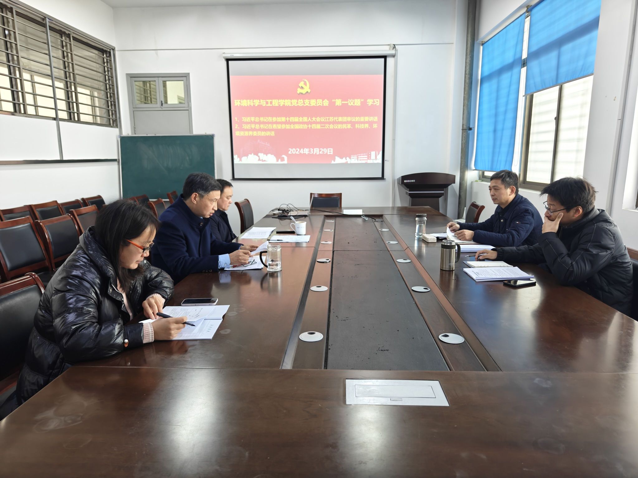 3月29日上午,在北校区学院会议室,环境学院党总支委员会“第一议题”学习习近平总书记在参加十四届全国人大二次会议江苏代表团审议时、在看望参加政协会议的民革科技界环境资源界委员时的重要讲话精神。学院党总支书记陈阳主持,总支全体委员参加。