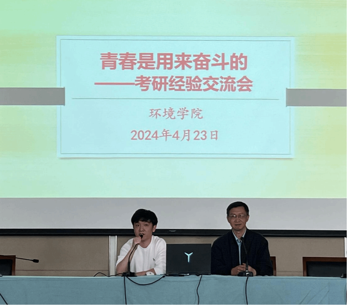 为帮助2021级学生科学规划考研进程,缓解考研压力,增强考研自信,4月24日下午,环境学院在化工楼报告厅举办考研经验分享交流会。学院党总支副书记周政、全体辅导员及21级学生等200余人参会,活动由辅导员王翔主持。