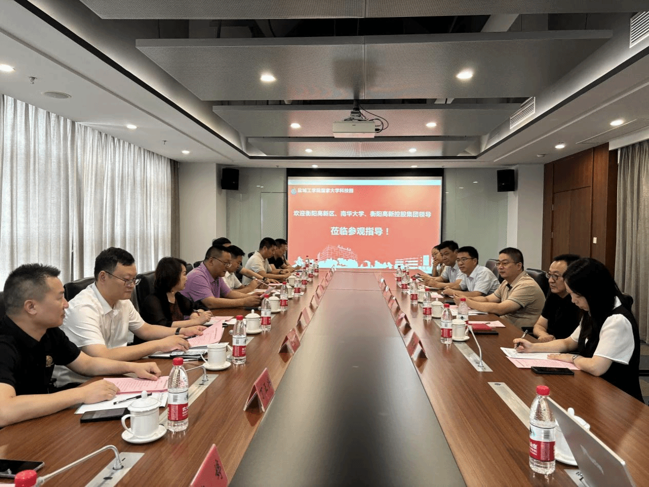 8月15日下午,湖南省衡阳高新区党工委副书记胡琼峰,南华大学科研部部长周青芝一行来真人赌博游戏_澳门赌博网-app*官网大学科技园调研交流。盐龙湖校区管委会、大学科技园、技术转移中心副主任、党总支副书记(主持工作)赵云峰,科学技术处副处长、盐城国家高新区管委会副主任陈林陪同。