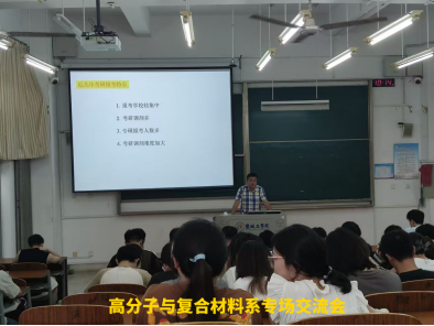 为进一步加强材料学院考研同学的分析、决策能力,全面做好2025年考研报考服务工作, 9月5日至11日期间,学院以专业系为单位,先后在知达楼C102、C105、C106教室和B314会议室组织开展了6场2025年考研报考经验交流会。活动由学院统一部署,党委副书记温崇明统筹安排,副院长刘超、王金山,各专业系主任,专业相关教师,专职辅导员和全体考研学生参加。