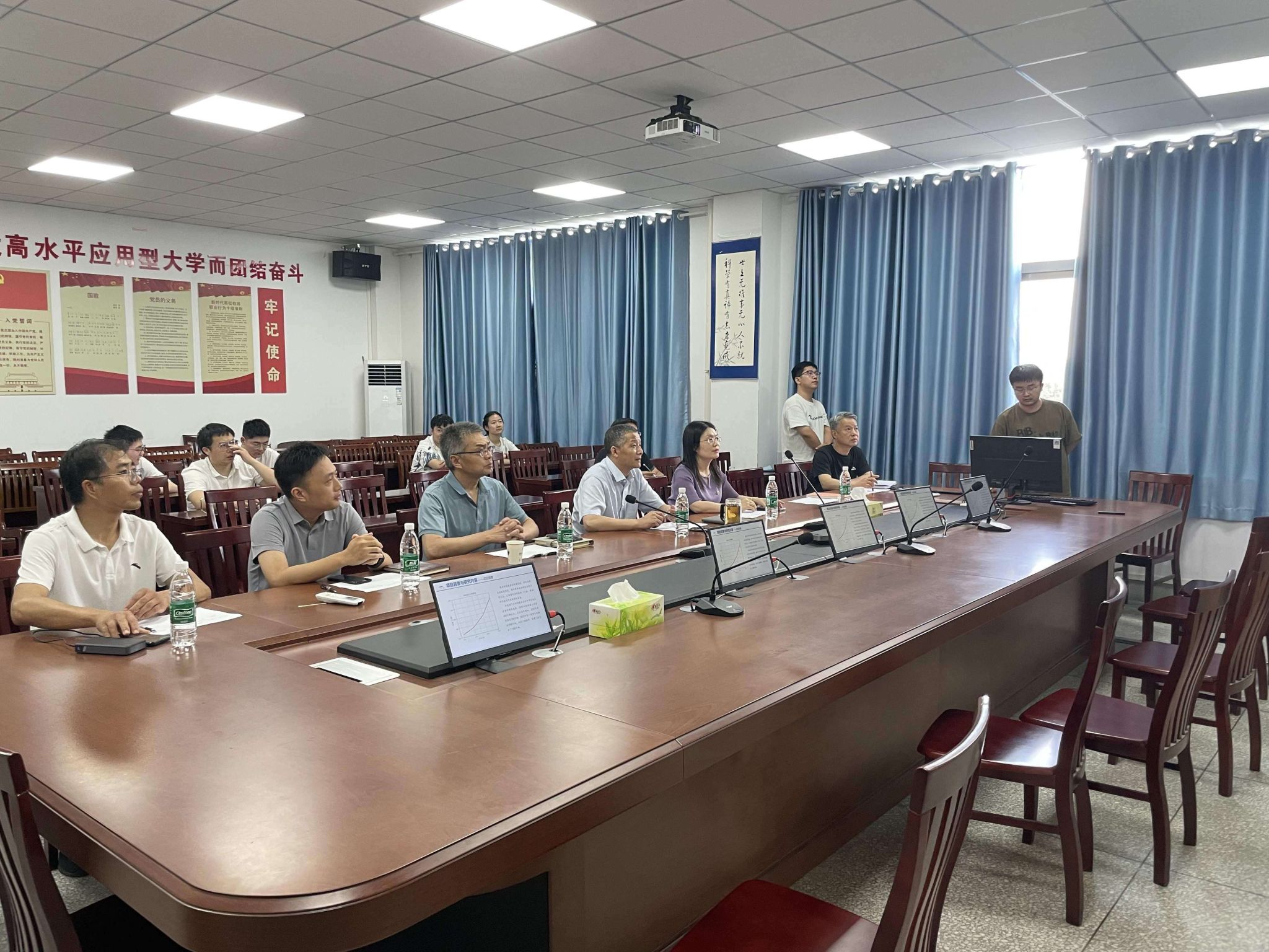 信息学院的四个备赛团队依次进行了汇报展示。与会老师对项目逐一进行点评指导,并围绕选题、先进性、创新性等方面展开了深入沟通交流。杨秀丽对各项目的进展情况给予了充分肯定,对参赛师生不惧酷暑、努力拼搏的精神表示高度赞赏,同时给各项目提出了建设性意见和较高的期望。王如刚表示,学院将高度重视“挑战杯”系列竞赛备赛工作,持续做好立项团队的服务保障工作。