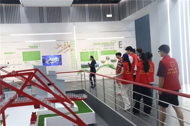 实践团还考察了国内最大的不锈钢产业展示中心——响水不锈钢大世界。在“钢铁脊梁”主题展区,实践团观摩全息投影了解到响水县按照“千亿级、全链条、集聚式”目标,以德龙公司为龙头,全力招引不锈钢行业“高精尖”项目,形成集镍铁冶炼、不锈钢精炼、热轧、冷轧以及棒材、线材、管材、制品于一体的全产业链条。工业区秉承用情怀讲好传统工业的故事,构建“可观(游览)、可玩(体验)、可学(展示)、可购(购物)、可闲(休闲)”的工业旅游运营生态,通过工业研学游串联“生产-展示-体验-消费”全环节,使参观者既能触摸不锈钢从矿石到高端制品的科技脉动,又能感受工业美学与海洋文化的深度融合,为传统产业注入文旅新活力,成为长三角地区展示海洋经济新质生产力的标杆窗口。