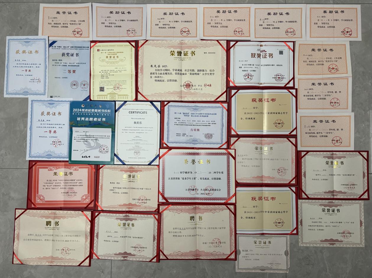 “两年的军旅生活锻炼了我的身体,磨炼了我的意志,锤炼了我的品格,让我有较强的毅力与勇气来克服任何困难。”朱天乐说道。在校期间,他担任班级班长,曾任土木工程学院学团联合会副主席、校学生会生活权益部长、梦之声合唱团参赛组一男高等职务。