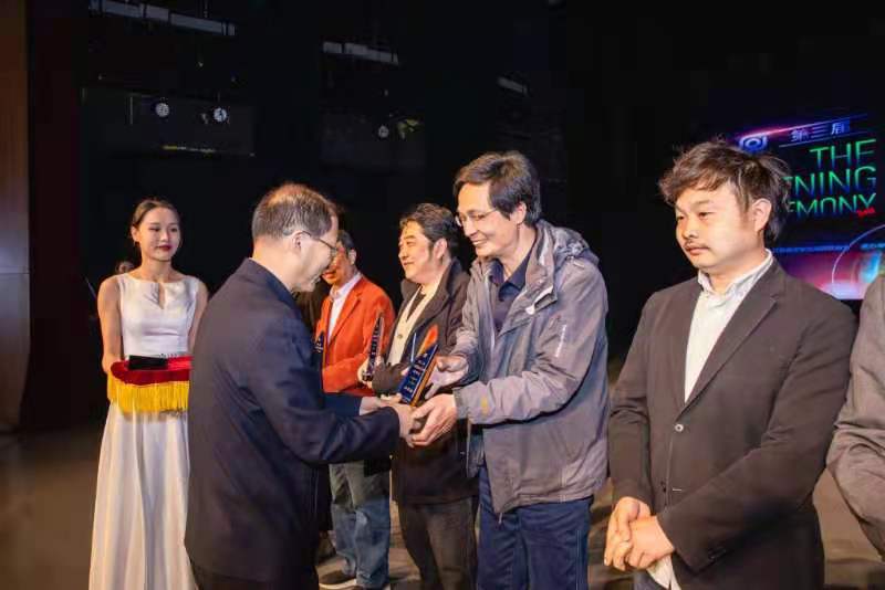 省文联水家跃书记在给孙华金颁奖。