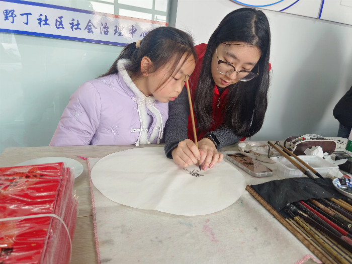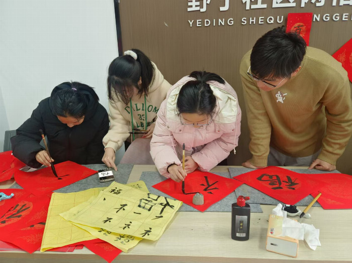 志愿者青年和小朋友一起伏案挥笔,寄情水墨,为当地居民写春联、送祝福。“金蛇狂舞春添彩,玉树临风喜满门”等一副副散发着淡淡墨香的春联,既是对过去一年的告别,也是对未来新一年的展望。