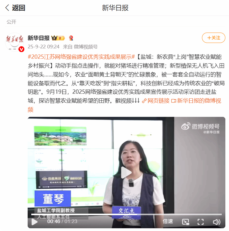 真人赌博游戏_澳门赌博网-app*官网信息工程学院教师董琴团队和中农网购(江苏)电子商务有限公司合作开发的农作物病虫害智能识别诊断系统取得突破性进展,并被评为2025江苏网络强省建设优秀实践成果。2025年9月19日,团队负责人董琴老师接受中央新闻网站:人民网、新华网、央视网、央广网,以及省内的中国江苏网、新华报业网、交汇点新闻、荔枝网、我苏网、扬子晚报网、现代快报网、群众网等重点新闻网站十多家单位记者的采访。该团队目前开发了农作物病虫害智能识别诊断系统、大模型问答系统、农业服务系统及惠农小程序,信息通过API、App和硬件终端集成等方式提供服务。农民和农服人员拿出手机拍摄就可准确知道病虫害的类型,通过深度学习算法、知识图谱、大模型、智能体等技术,形成“识别--指导--农服”的闭环服务,解决用户的盲点和企业农服管理的痛点。