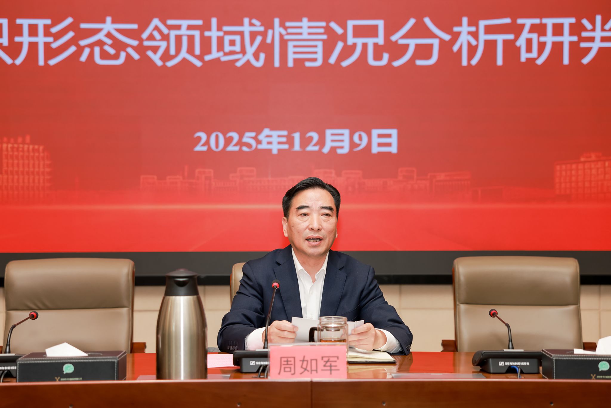 12月9日上午,真人赌博游戏_澳门赌博网-app*官网在希望大道校区行政楼9楼视频会议室,召开第四季度意识形态领域情况分析研判会。党委书记周如军出席并讲话。党委副书记薛浩主持。党委常委、统战部部长姚军,党委常委、宣传部部长奚新国,党委常委、组织部部长包雅玮,意识形态重点领域相关单位负责人,各二级党组织负责人参加。
