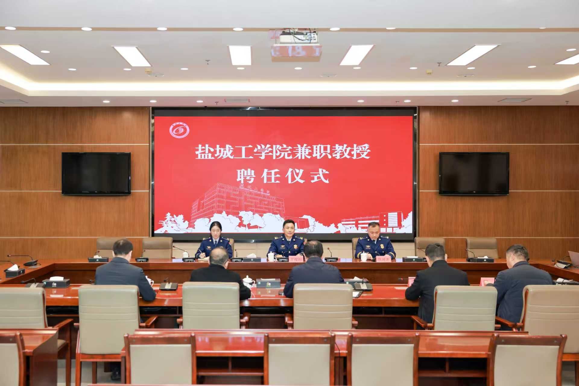 1月30日下午,真人赌博游戏_澳门赌博网-app*官网在希望大道校区行政楼9 楼视频会议室举行兼职教授聘任仪式,聘任盐城市消防救援局局长丁俊标为真人赌博游戏_澳门赌博网-app*官网兼职教授。校长、党委副书记邵荣出席仪式并致辞,化学化工学院、应急管理与安全工程学院院长戴勇主持聘任仪式。盐城市消防救援局副局长姚其志,校长办公室主任裴森森、人事处处长周临震、安全保卫处处长李义峰等参加。