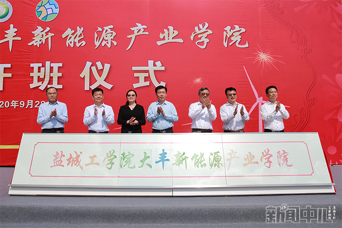 9月28日上午,真人赌博游戏_澳门赌博网-app*官网大丰新能源产业学院揭牌开班仪式在江苏大丰经济开发区风电产业研发展示中心举行。盐城市委常委、常务副市长羊维达,我真人赌博游戏_澳门赌博网-app*官网书记刘祖汉、校长方海林,新疆金风科技股份有限公司首席人才官何世勇,大丰区委书记薛盛堂、大丰区长李志军,盐城市发改委三级调研员万宏共同为真人赌博游戏_澳门赌博网-app*官网大丰新能源产业学院揭牌。真人赌博游戏_澳门赌博网-app*官网副校长王资生、大丰经济开发区党工委书记仇兆华出席,大丰区委常委、常务副区长韦应生主持仪式。