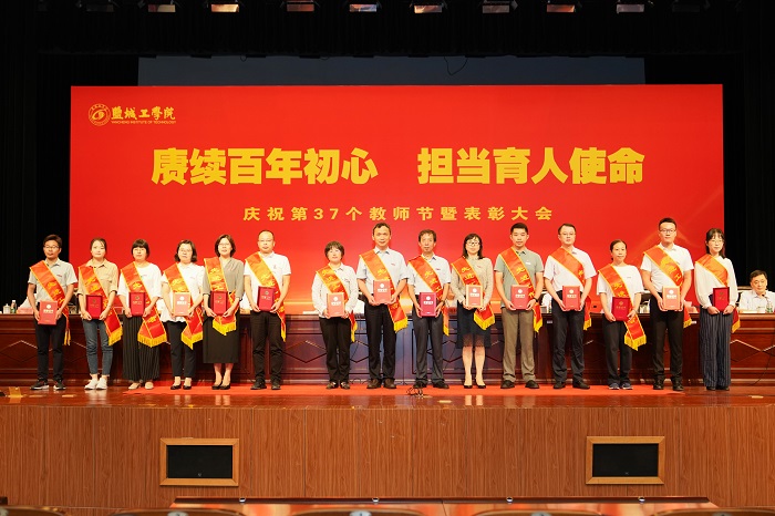 会上,学生向从教30年教职工代表献花。学生代表、盐城市优秀共青团员、校十佳青年志愿者、校三好学生、校团委学生兼职副书记、人文社会科学学院B中文181班许欣雨同学致感谢词。优秀教师代表、化学化工学院蔡照胜教授分享自己的教育教学经验和感悟。先进集体代表、土木工程学院院长吴发红交流了学院教育教学工作的务实举措。