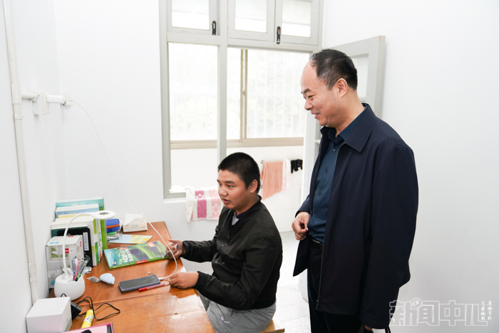 在宿舍,邵荣与夏唯壹亲切交谈,询问他的身体状况,了解他来校后的学习生活情况,并嘱咐他遇到困难及时向老师反映,真人赌博游戏_澳门赌博网-app*官网和学院会尽力帮助解决。邵荣对夏唯壹自立自强、奋发向上的精神表示肯定,同时赠送由邵荣起名、徐海涛老师执笔的书法作品“乐道斋”,勉励他以积极乐观的心态面对困难与挫折,坚守崇高信仰、坚定必胜信念、坚决追求真理、坚持自立自强,走出自己的成功道路。