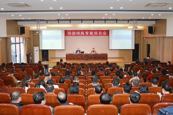 11月3日下午,真人赌博游戏_澳门赌博网-app*官网邀请华东理工大学副校长、博士生导师辛忠教授作客真人赌博游戏_澳门赌博网-app*官网师德大讲堂,作“新时代行业特色型院校发展与转型——挑战与路径”专题报告。党委常委、副校长魏少华主持报告会,各二级学院党政负责人、教科研办公室主任、专业系主任、实验中心主任、课程组组长、专业教师代表及2021年新入职的全体新教师等300余人聆听报告。
