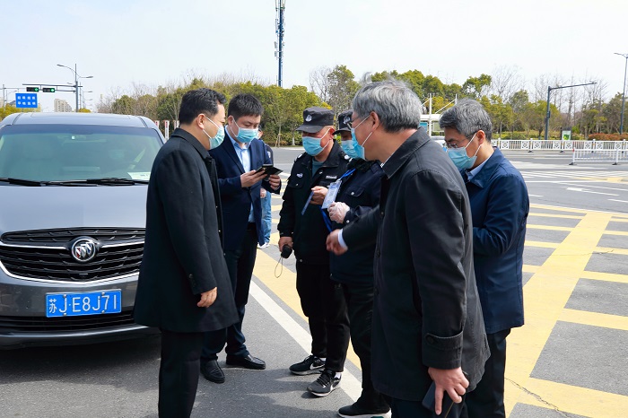 3月27日上午,盐城市委常委、组织部部长费坚一行以“四不两直”的方式来真人赌博游戏_澳门赌博网-app*官网检查指导疫情防控工作。盐城市委副秘书长徐华明参加检查。我真人赌博游戏_澳门赌博网-app*官网书记刘祖汉,党委副书记、校长方海林,党委常委、副校长邵荣、宋长春及相关职能部门、直属单位负责同志陪同。