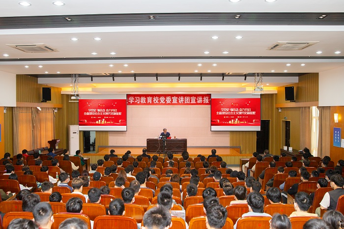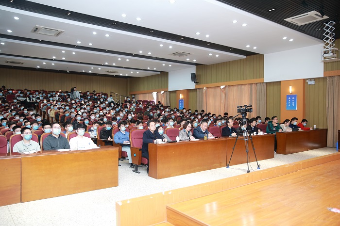 党委常委、宣传部长韩雅丽,马克思主义学院党总支书记钱长锋,机械优集学院院长周海,机械优集学院教师代表、学生党员、入党积极分子、学生代表等300余人聆听报告。