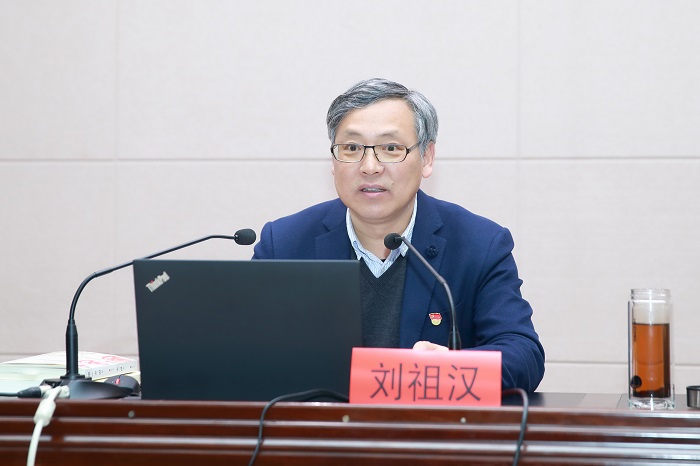 刘祖汉希望全校青年学生深刻理解党史学习教育的六大重点目标,做红色精神的传承者、孜孜不倦的求学者、道德风尚的引领者和起而行之的奋斗者,携手并肩、攻坚克难,在真刀真枪实干中成就一番事业。