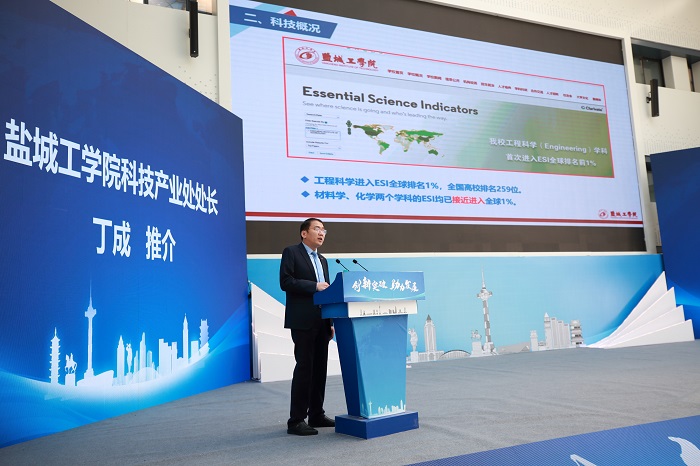 盐城市科技局副局长石春山介绍盐城产业及科技发展情况