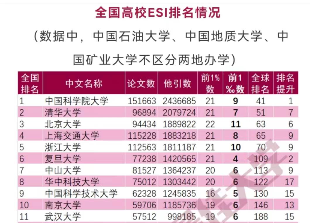 江苏高校ESI排名情况