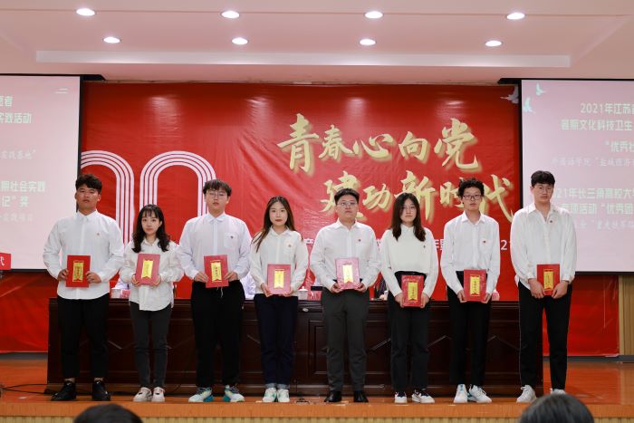 会上,组织部副部长秦卫兵宣读表彰文件,与会领导为2021年度获省级以上表彰的集体和个人、校“五四红旗团委标兵”、“五四红旗团委”和“十佳共青团员标兵”“魅力团支书”“活力团支部”颁发奖牌和证书。获评2021年度“五四红旗团委标兵”代表、化学化工学院王灿星老师,2021年度江苏省优秀青年志愿者、汽车工程学院S汽车191班刘妍同学,2021年度江苏省优秀共青团员、校学生会执行主席、电气工程学院C电气182班周栋泽同学分别作交流发言。