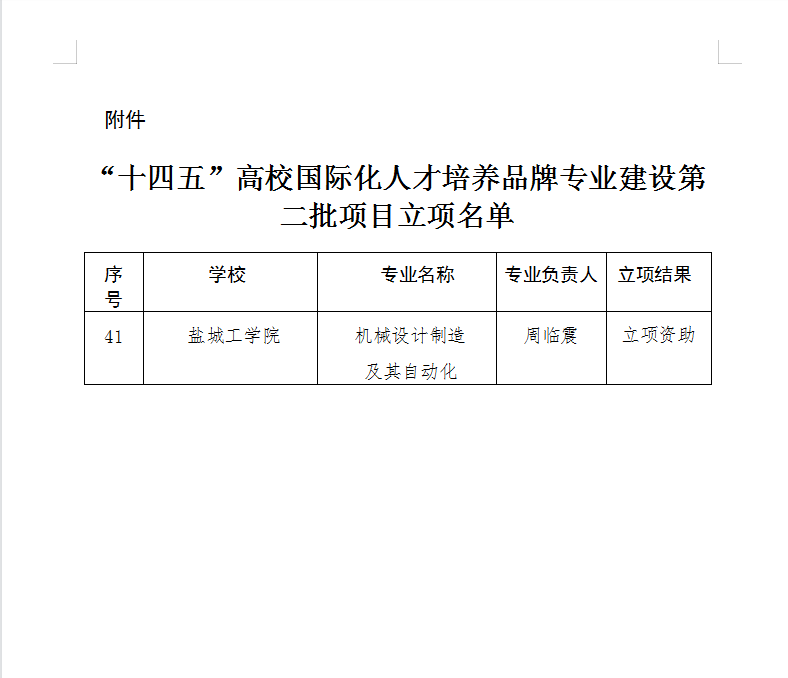 近日,省教育厅发布了《真人赌博游戏_澳门赌博网-app*官网:公布“十四五”高校国际化人才培养品牌专业建设第二批项目立项名单的通知》(苏教办外函〔2022〕12号),真人赌博游戏_澳门赌博网-app*官网机械设计制造及其自动化专业获得省“十四五”高校国际化人才培养品牌专业建设项目,并获得立项资助。该专业获得国家级一流本科专业建设点、教育部卓越工程师培养计划专业、国家级特色专业、江苏省高校品牌专业建设工程专业、江苏省重点专业,并与英国格林威治大学合作举办本科教育项目,通过国际工程教育专业认证。该专业所在的学科被评为江苏省重点学科,进入工程科学ESI全球排名前1%。
