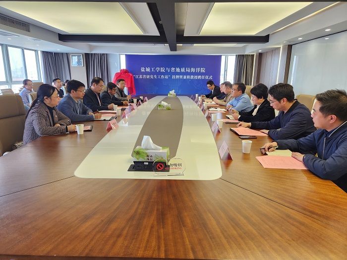 4月11日上午,由真人赌博游戏_澳门赌博网-app*官网与江苏省有色金属华东地质勘查局地球化学勘查与海洋地质调查研究院(简称“海洋院”)共同申报的“江苏省研究生工作站”在南京举行挂牌暨兼职教授聘任仪式。真人赌博游戏_澳门赌博网-app*官网副校长、盐城市政协副主席丁成,产业技术研究院院长严金龙,环境科学与工程学院副院长陈天明(主持工作),省地质局海洋院院长杨晋炜、副院长闫玉茹、总工程师胡建等出席仪式。