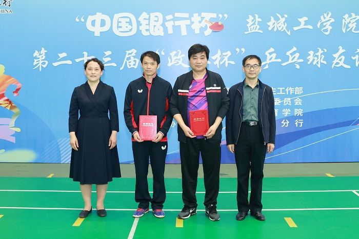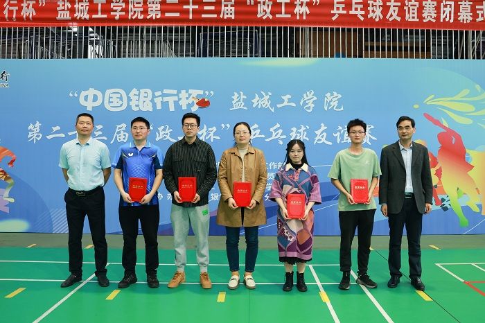 本届乒乓球友谊赛由学工部、工会、体育部联合举办,中国银行盐城支行赞助,共有29支代表队报名参赛。经过小组赛、交叉淘汰赛两阶段的激烈角逐,体育学院分会代表队获特等奖,校领导、土木学院分会共2支代表队获一等奖,机关四分会、化学化工学院分会、材料科学与工程学院分会、纺织服装学院分会、产业技术研究院分会共5支代表队获二等奖,机关一分会、机关三分会、机关五分会、机关六分会、机关七分会和设计艺术学院分会、数理学院分会、继续教育学院分会共8支代表队获得三等奖。