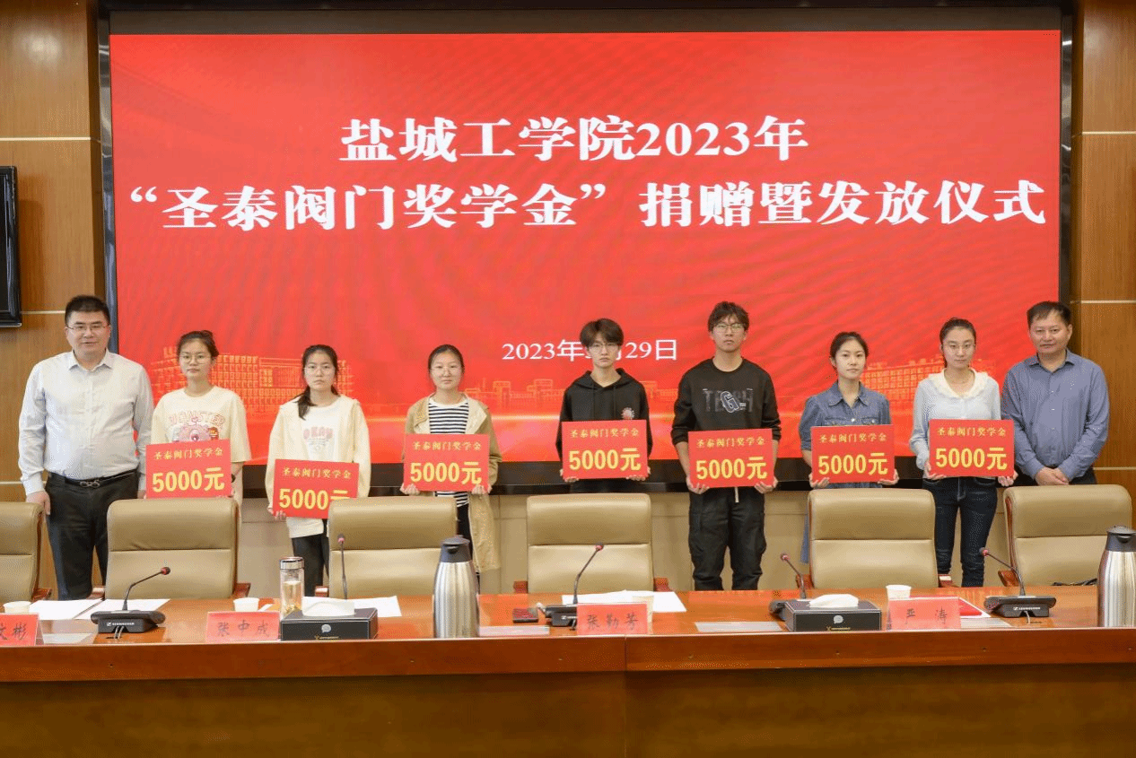 张勤芳代表真人赌博游戏_澳门赌博网-app*官网接受江苏圣泰阀门有限公司捐赠的奖学金并颁发捐赠证书。他对圣泰阀门积极致力公益事业、帮困助学的行为表示感谢,对获得奖学金的20位品学兼优的同学表示祝贺。他勉励获奖学生要志存高远、脚踏实地,以优异的成绩回报爱心人士的殷切关怀,做优异出彩的“盐粒子”;要勇于开拓、顽强拼搏,争做追求幸福的奋斗者;要学会做人、心怀感恩,以奉献精神和实际行动积极回报社会,争做乐于助人的奉献者。