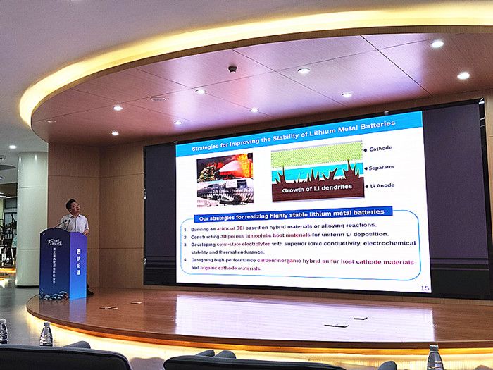 报告会上,金钟教授从金属锂负极的保护、锂硫电池正极材料的结构设计、高容量有机电极的合成、水系液流电池等方面系统介绍了课题组近几年的研究工作。