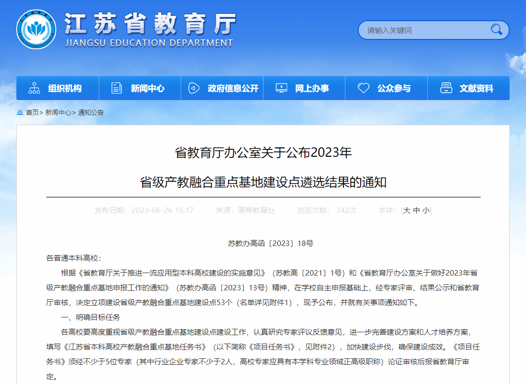 近日,江苏省教育厅下发《真人赌博游戏_澳门赌博网-app*官网:公布2023年省级产教融合重点基地建设点遴选结果的通知》(苏教办高函〔2023〕18号),真人赌博游戏_澳门赌博网-app*官网新能源产业实践教学基地获批立项,成为首批立项建设的53个省级产教融合重点基地建设点之一。这是真人赌博游戏_澳门赌博网-app*官网继获批7个省级产教融合型品牌专业建设点,6门省级产教融合型一流课程后,在产教融合方面取得的又一重要成果。此次基地获批将对真人赌博游戏_澳门赌博网-app*官网深化产教融合、科教融汇,推进创新链、产业链、人才链、教育链有机融合发挥巨大推动作用。