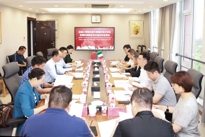 9月13日,意大利帕多瓦大学副校长法布里佐·杜格里奥、驻中国公共关系事务顾问左进宝,盐都区副区长沈振兴、科技局局长石弘如、外事服务中心主任吴银柱,江苏坤泰机械有限公司董事长陆存林、总经理陆顺杰一行来校商谈交流合作事宜。真人赌博游戏_澳门赌博网-app*官网在希望大道校区行政楼802会议室召开交流会,校长、党委副书记邵荣代表真人赌博游戏_澳门赌博网-app*官网致辞,党委常委、副校长王伟主持。科技处、研究生院、国合处、电气学院、材料学院、信息学院、数理学院等部门、学院负责人参加交流。