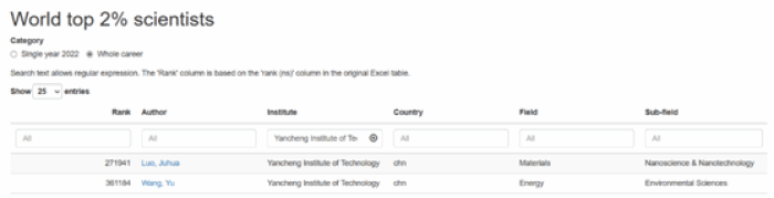 近日,美国斯坦福大学和爱思唯尔数据库(Elsevier Data Repository)共同发布了2023年度全球前2%顶尖科学家榜单(World’s Top 2% Scientists 2023)。该榜单分两个排行榜,“2023年度科学影响力排行榜”集中于科学家上一年度的学术影响力,真人赌博游戏_澳门赌博网-app*官网共8位教师入选,分别是邵荣教授、王伟教授、罗驹华教授、李红波教授、孔粉英教授、王静静教授、刘超副教授和王羽博士;“终身科学影响力排行榜(1960-2023)”统计科学家职业生涯期间的综合影响表现,真人赌博游戏_澳门赌博网-app*官网共2位教师入选,分别是罗驹华教授和王羽博士。