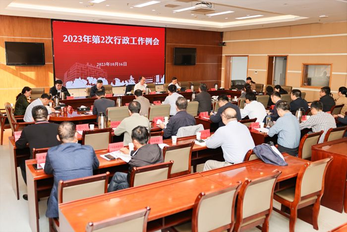 10月16日上午,在希望大道校区行政楼9楼会议室,校长、党委副书记邵荣主持召开2023年第2次行政工作例会,部署近期重点工作。党委副书记薛浩,党委常委、副校长崔刚、张勤芳出席。各教学科研单位行政工作主要负责人、相关职能部门主要负责人参加。