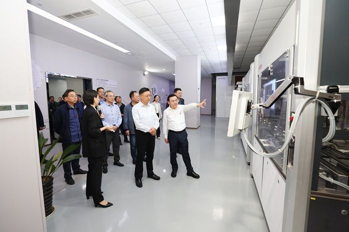 材料学院党委副书记朱凌、副院长诸华军作补充发言。全体人员还参观了上电智联数字化展厅和智能数字化生产车间。