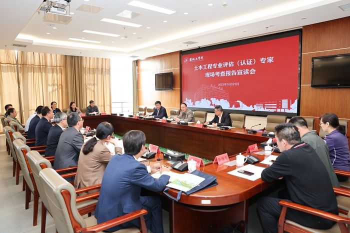 10月23日至25日,以湖南大学教授、博士生导师方志为组长,中国建筑股份有限公司教授级高工王立,西安建筑科技大学教授、博士生导师钟炜辉为成员的专家组对真人赌博游戏_澳门赌博网-app*官网土木工程专业进行专业评估(认证)现场考查。校长、党委副书记邵荣,党委常委、副校长王资生、王伟、张勤芳,宣传部、教务处、评估处、人事处、财务处、学生处、团委、设备处、保卫处、后勤集团、图书馆等部门负责人,土木工程学院班子成员及师生代表等参加相关会议和考查活动。