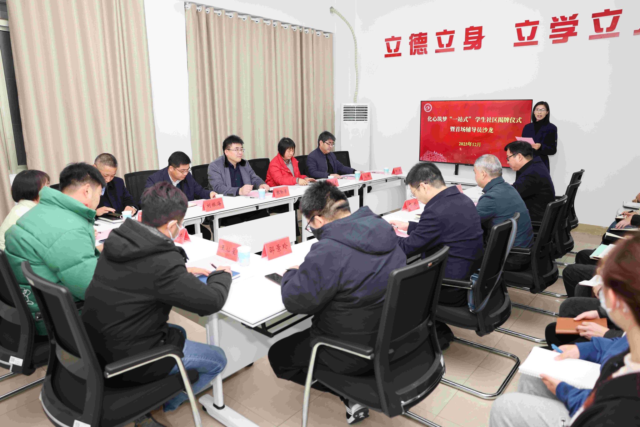 揭牌仪式后,校领导与参会人员共同参观了学生社区各功能区,对下一步更好地开展学生社区育人工作进行现场指导。江滔代表学院介绍了化心筑梦“一站式”学生社区的建设情况。随后,学院组织专兼职辅导员开展“一站式”学生社区首场辅导员沙龙活动,围绕社区管理模式研讨交流。