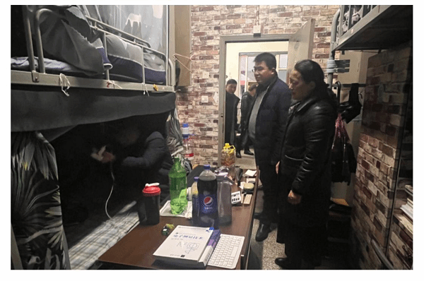 检查过程中,张勤芳同宿舍管理员细致交流,详细了解学生宿舍安全保障与服务管理措施;与同学们亲切交谈,仔细了解毕业班学生的考研情况和就业状况,鼓励考研学生调整心态,合理安排时间,为复试做好充分准备,预祝他们金榜题名。他叮嘱同学们树立冬季防火意识,注意用电安全,自觉杜绝使用违规电器,保持宿舍卫生和通风;注意防寒保暖,保持良好作息,以最佳状态做好学期末复习迎考准备。