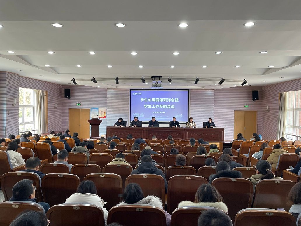 2月27日下午,在希望大道校区土木馆报告厅,真人赌博游戏_澳门赌博网-app*官网召开学生心理健康研判会暨学生工作专题会议。党委常委、副校长张勤芳主持会议。学生处、安保处、团委主要负责人,研究生院、后勤集团相关负责人,二级学院分管学生工作书记,学工办(副)主任、团委(副)书记、全体专兼职辅导员,学生处、安保处、团委、研究生院科级以上人员,公寓管理中心主任等近200人参加会议。