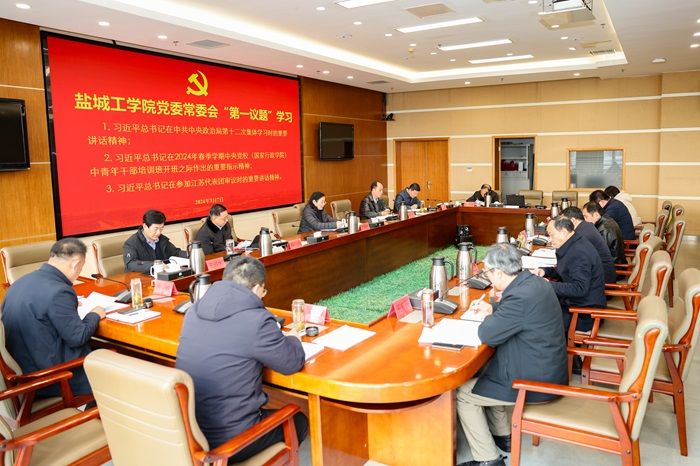 党委书记方海林主持。党委副书记、校长邵荣,党委副书记薛浩,党委常委、副校长崔刚、王资生,副校长、盐城市政协副主席丁成,党委常委、纪委书记、省监委派驻监察专员陈伟,党委常委、副校长张勤芳,党委常委、党委统战部部长姚军,党委常委、党委组织部部长邢晓平,党委常委、党委宣传部部长奚新国出席,党办、校办、纪委办等部门主要负责人参加。