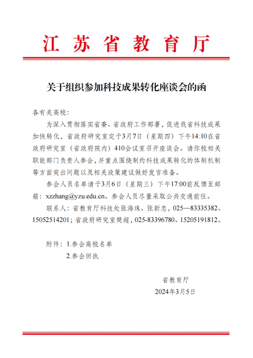 3月7日,真人赌博游戏_澳门赌博网-app*官网作为全省的10个代表高校之一,受邀参加省政府政策研究室组织的全省科技成果转化座谈会。会上,真人赌博游戏_澳门赌博网-app*官网产业技术研究院和科学技术处介绍了真人赌博游戏_澳门赌博网-app*官网技术转化工作经验,并围绕制约全省科技成果转化的体制机制等方面突出问题以及相关政策建言献策。