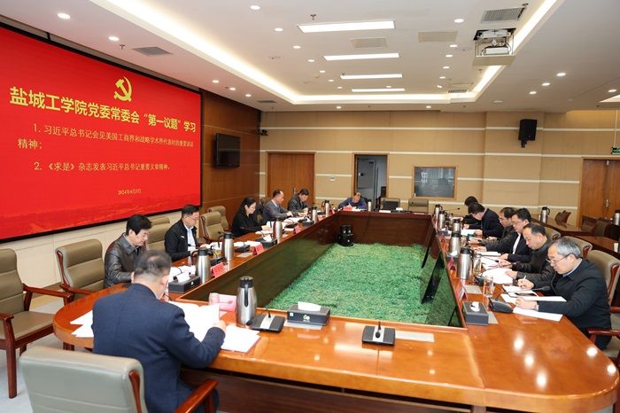 党委书记方海林主持。党委副书记、校长邵荣,党委副书记薛浩,党委常委、副校长崔刚、王资生,副校长、盐城市政协副主席丁成,党委常委、纪委书记、省监委派驻监察专员陈伟,党委常委、副校长张勤芳,党委常委、党委统战部部长姚军,党委常委、党委组织部部长邢晓平,党委常委、党委宣传部部长奚新国出席,党办、校办等部门主要负责人参加。