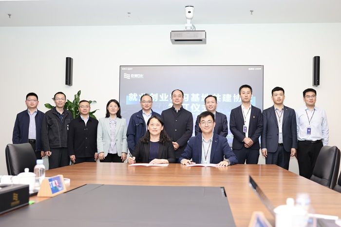 邵荣和王耀伟共同为大学生就业创业实习基地揭牌,徐新华和杨浩杰分别代表校企双方签订大学生就业创业实习基地共建协议。座谈会还就人才培养、创新创业、实习实训、科学研究等方面校企双方展开广泛交流,就搭建校企合作平台进行深度对接。