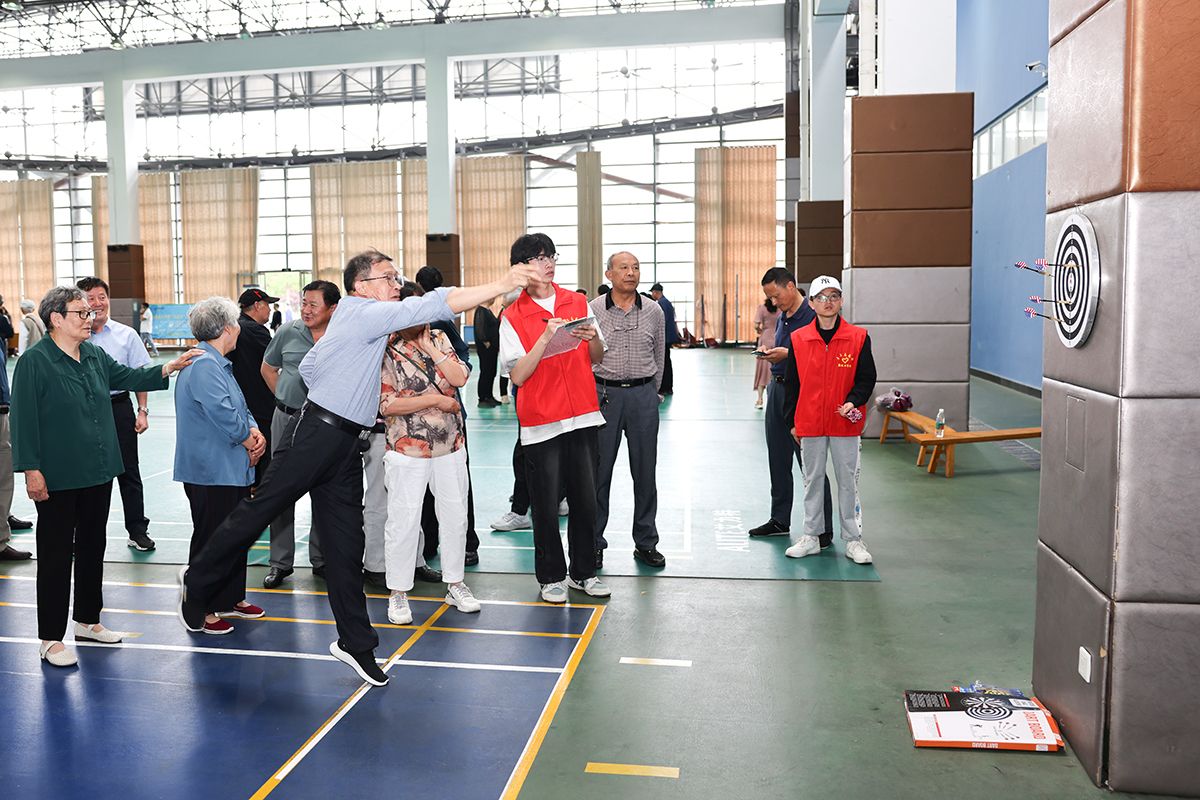 这次趣味运动会设有投镖、套圈、掷球、掷沙包和运乒乓球等5个比赛项目。活动现场,老同志们跃跃欲试,欢声笑语此起彼伏;久别相逢的亲切问候,处处洋溢着欢乐的氛围。这是一个大家交流心得、增进友谊的大聚会,也是大家展示风采、促进健康的大舞台。