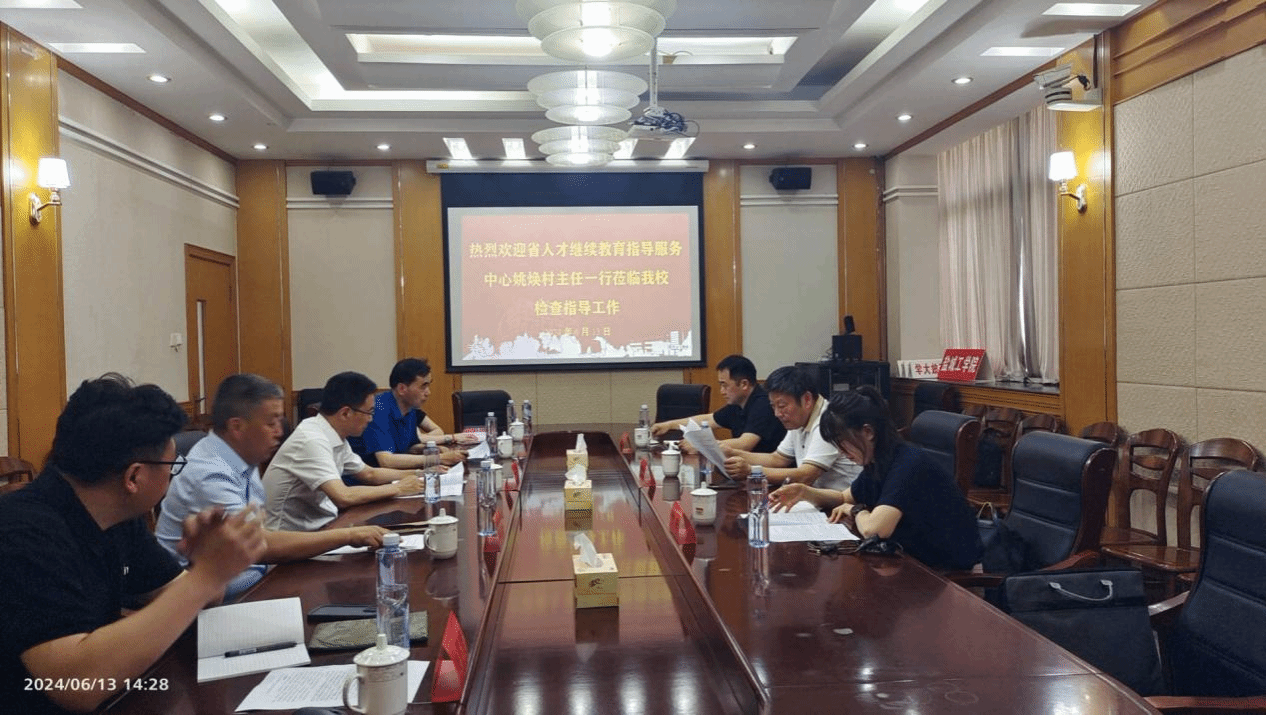 6月13日下午,省人才继续教育指导服务中心主任姚焕村一行来真人赌博游戏_澳门赌博网-app*官网继续教育学院考察调研第七批专业技术人才继续教育基地申报情况。党委常委、副校长王伟主持会议。市人社局专技处处长黄欣球参加调研。