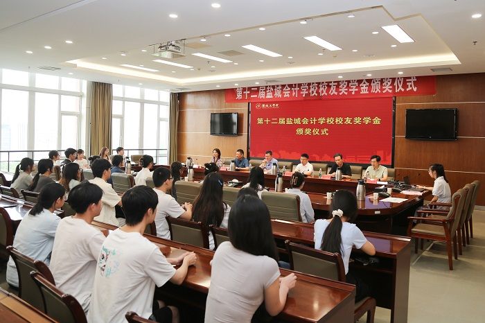 赵文彬宣读《真人赌博游戏_澳门赌博网-app*官网:向王映文等十二名同学颁发盐城会计真人赌博游戏_澳门赌博网-app*官网校友奖学金的决定》。