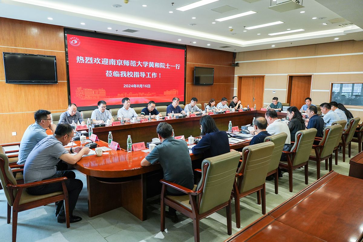 8月16日上午,中国工程院院士、南京师范大学副校长黄和一行莅临真人赌博游戏_澳门赌博网-app*官网指导交流工作。交流座谈会在希望大道校区行政楼9楼视频会议室举行,真人赌博游戏_澳门赌博网-app*官网书记方海林,党委副书记、校长邵荣出席。副校长、盐城市政协副主席丁成主持。