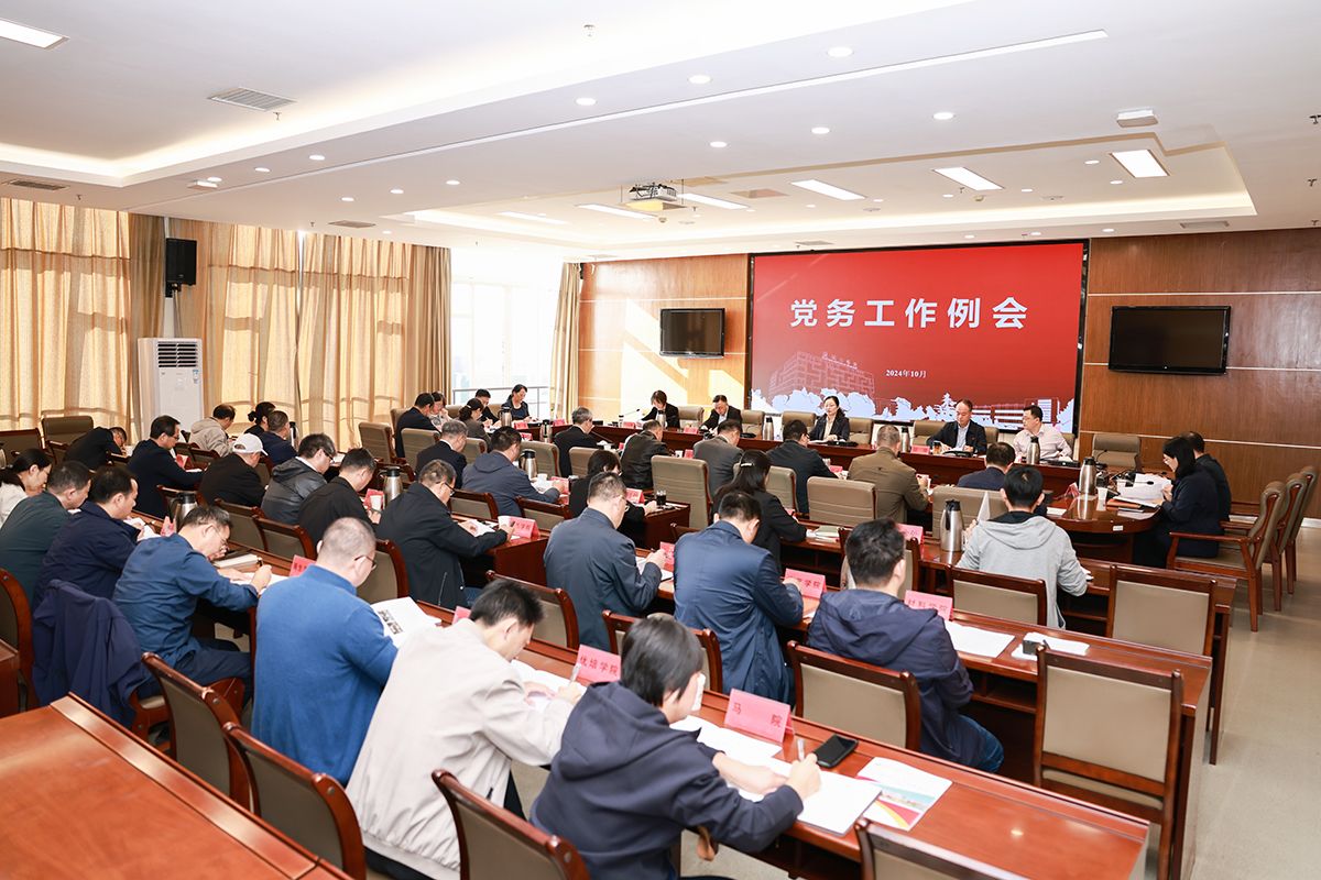 10月8日上午,在希望大道校区行政楼9楼视频会议室,真人赌博游戏_澳门赌博网-app*官网召开党务工作例会,听取党群部门通报并部署10月份主要工作。党委书记方海林,党委副书记、校长邵荣,党委副书记薛浩,党委常委、纪委书记、省监委派驻监察专员陈伟,党委常委、副校长、组织部部长邢晓平,党委常委、统战部部长姚军,党委常委、宣传部部长奚新国出席。薛浩主持会议,各党群部门负责人、二级党组织书记和机关其他部门、直属单位负责人参加。