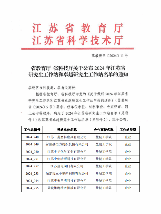 近日,江苏省教育厅、科技厅联合发布《真人赌博游戏_澳门赌博网-app*官网:公布2024年江苏省研究生工作站和卓越研究生工作站名单的通知》(苏教研函[2024]11号),真人赌博游戏_澳门赌博网-app*官网与江苏三菱磨料磨具有限公司、保定市立中车轮制造有限公司等单位合作共建的8个研究生工作站名列其中,获批总数位居省内同类高校第一。