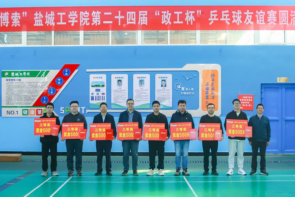 本届乒乓球友谊赛由学生处、工会、体育学院联合举办,江苏博索送变电工程有限公司赞助,共有31支代表队报名参赛。经过小组赛、交叉淘汰赛两阶段的激烈角逐,校领导代表队获特等奖,机关四分会、材料科学与工程学院分会共2支代表队获一等奖,化学化工学院分会、关工委老同志代表队、体育学院分会、外国语学院分会、信息工程学院分会共5支代表队获二等奖,机关一分会、机关六分会、数理学院分会、土木工程学院分会、汽车工程学院分会、机械工程学院分会、纺织服装学院分会、马克思主义学院分会共8支代表队获得三等奖。